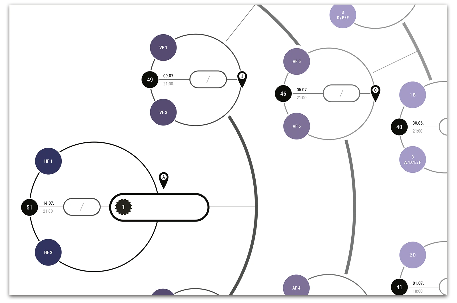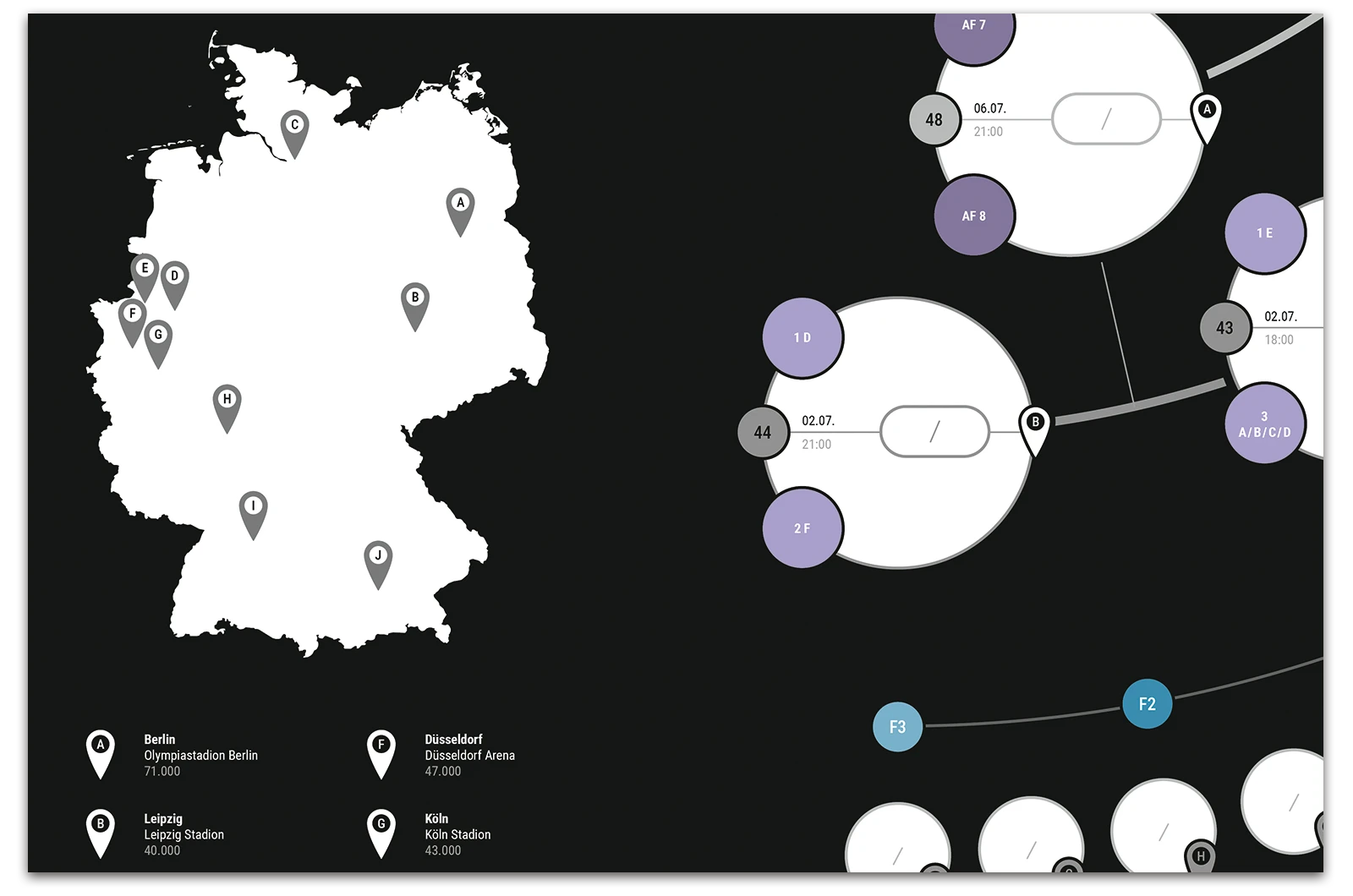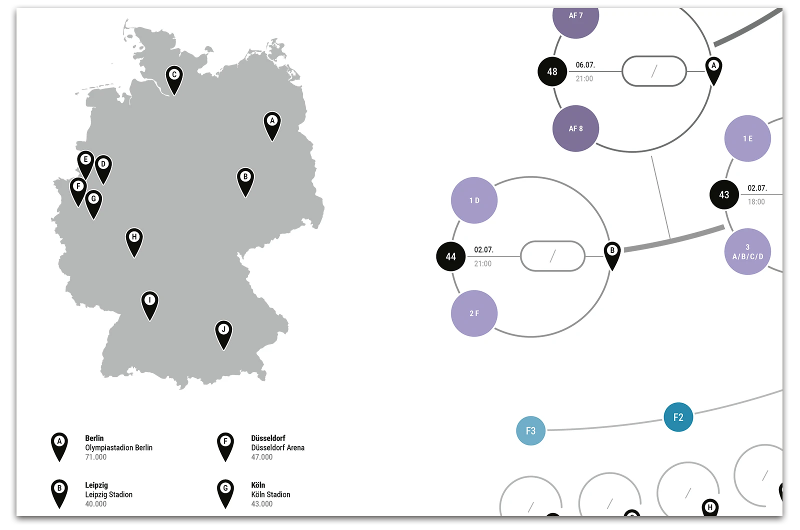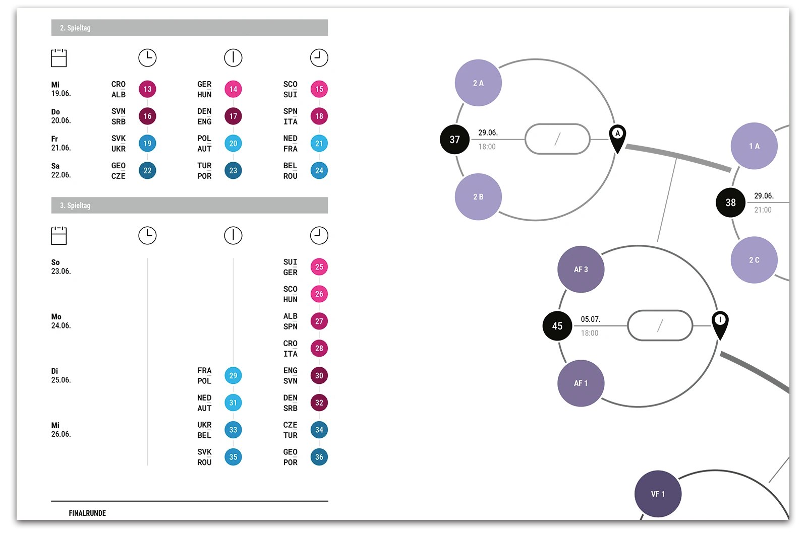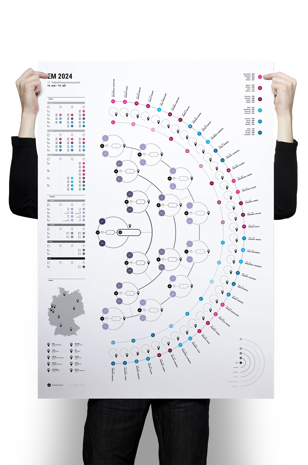 A project on the topic of infographics, where a fixture list for the 17th UEFA European Football Championship 2024 was created. This fixture list provides an overview of all matches taking place along with the times, as well as a geographical map showing the locations of the matches. The respective match results can be entered into the semi-circular graphic.